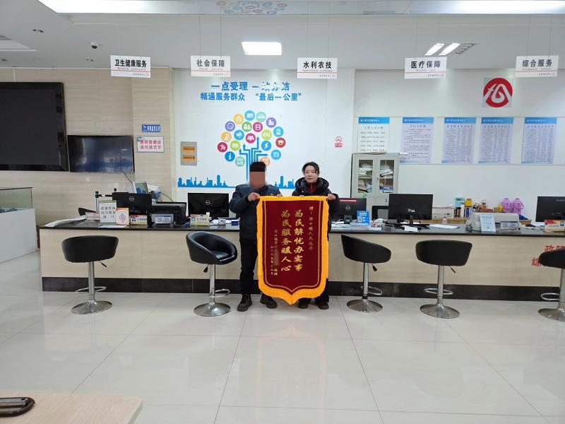 1月19日上午,汤口镇为民服务中心社保窗口收到了一份特别的“礼物”——芳村村民邵先生专程送来一面写有“为民解忧办实事,为民服务暖人心”的锦旗,以此表达对窗口工作人员诚挚的谢意。