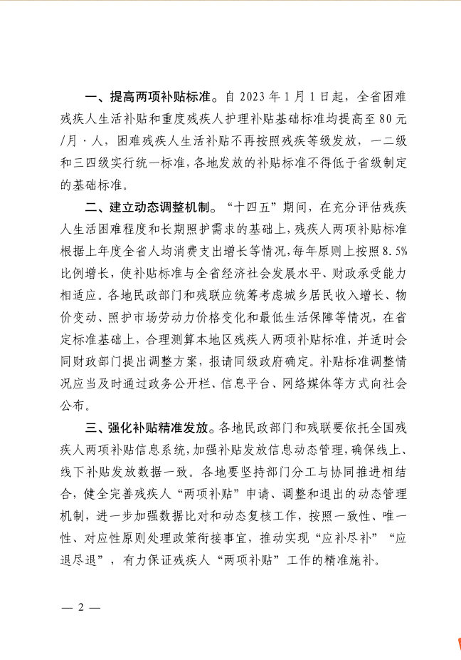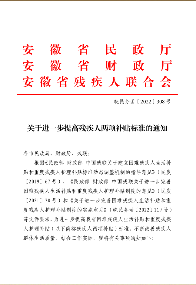 【政策文件】关于进一步提高残疾人两项补贴标准的通知