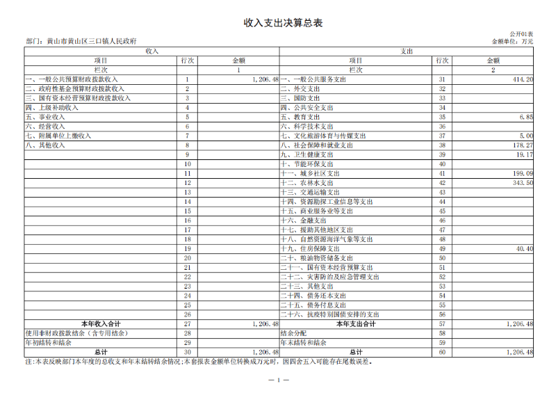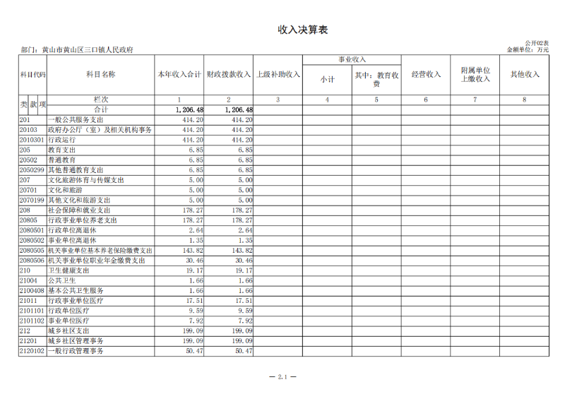 黄山区三口镇人民政府2024年度部门决算表.xlsx