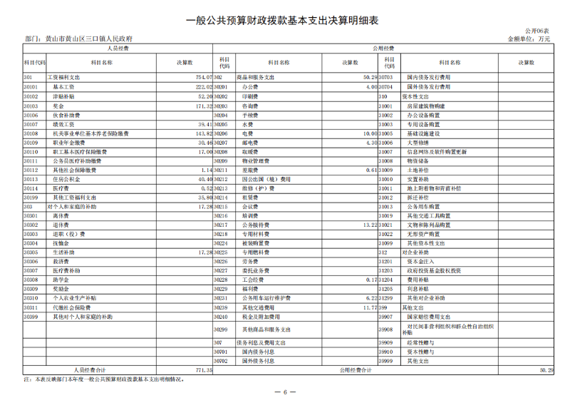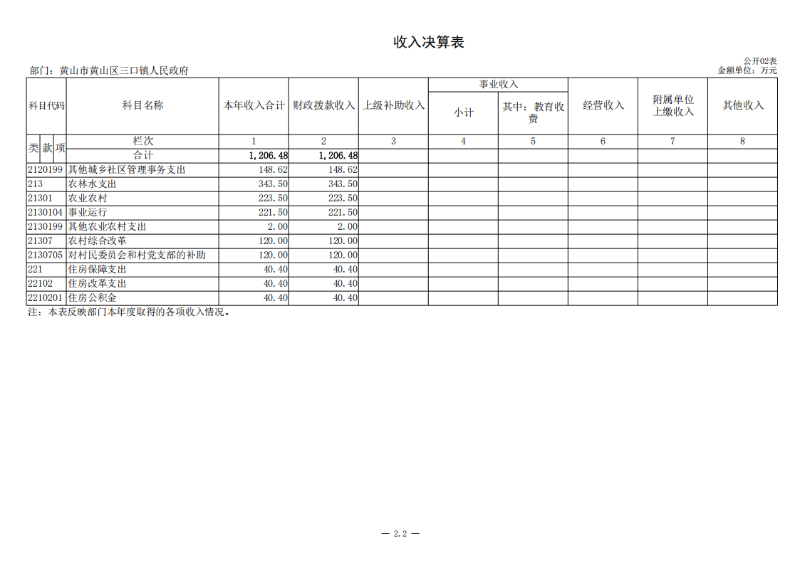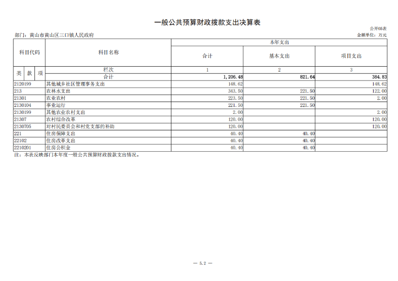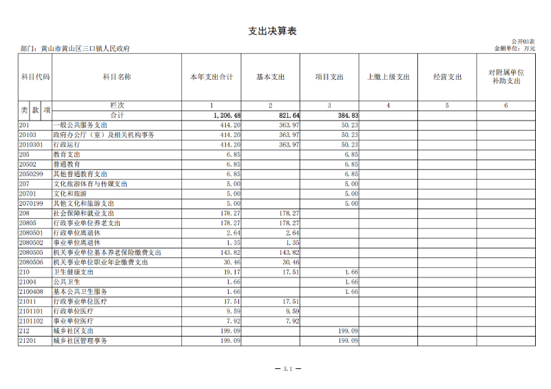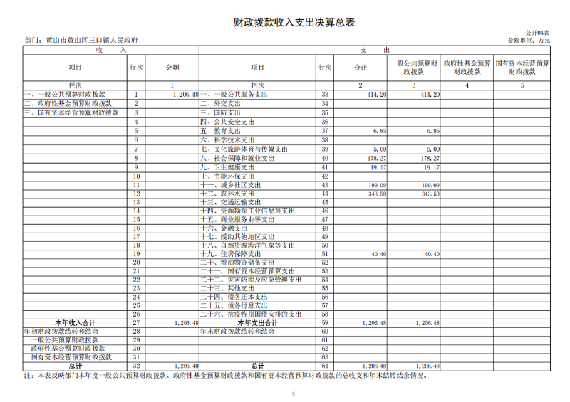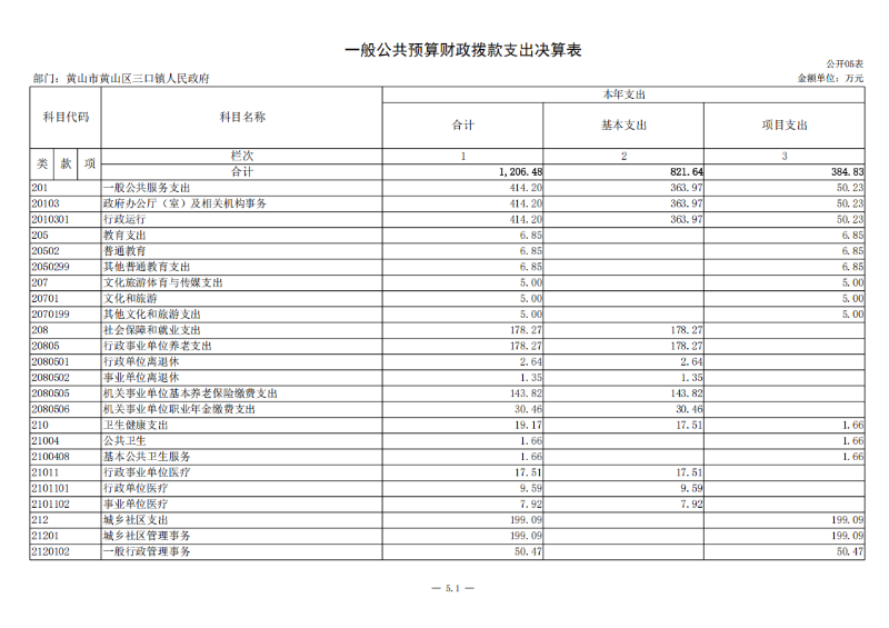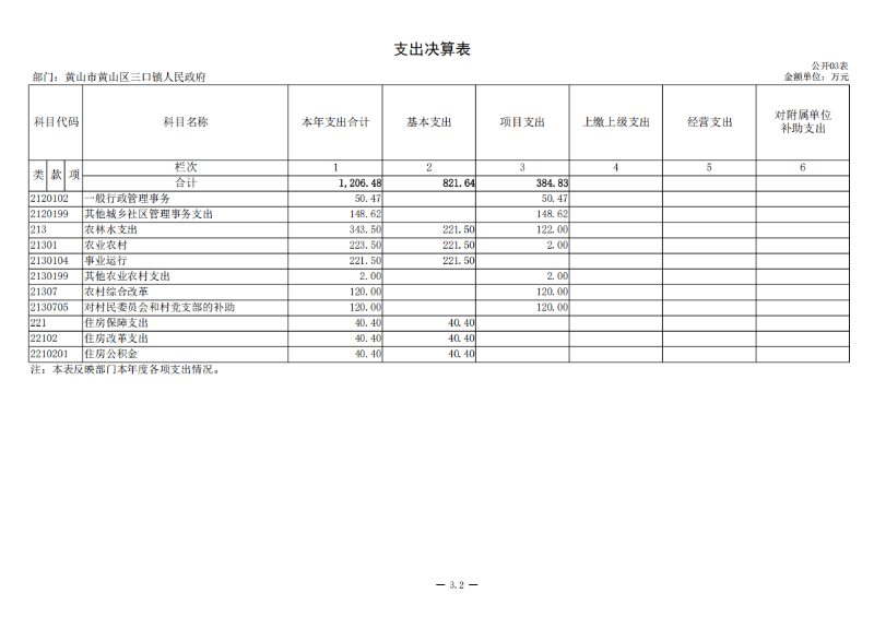 第二部分 黄山区三口镇人民政府2024年度部门决算表
