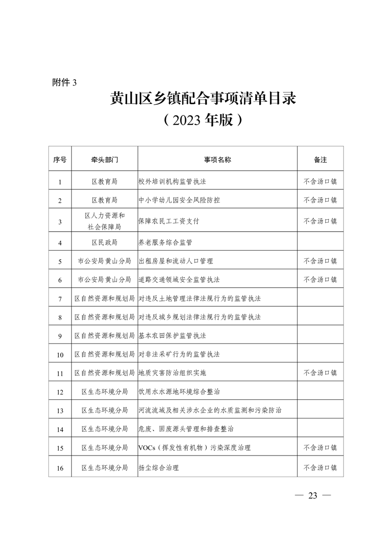 3.黄山区乡镇配合事项清单目录(2023 年版)
