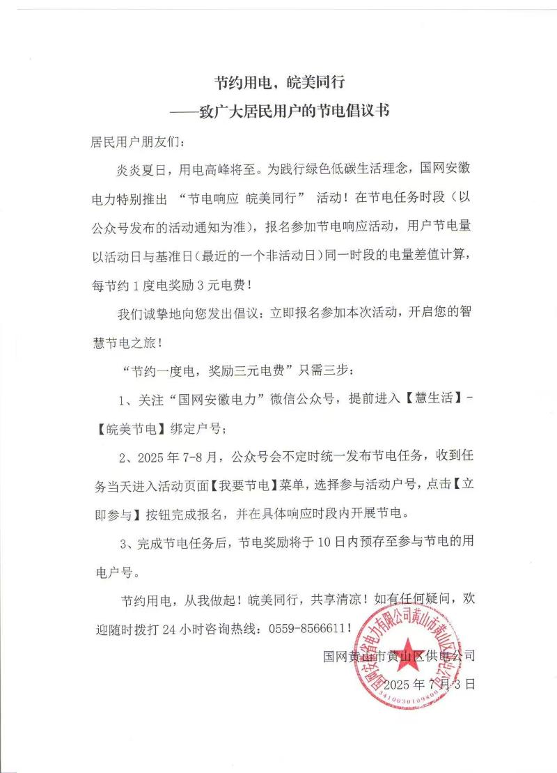 【主动回应】 节约用电 皖美同行——致广大居民用户的节电倡议书