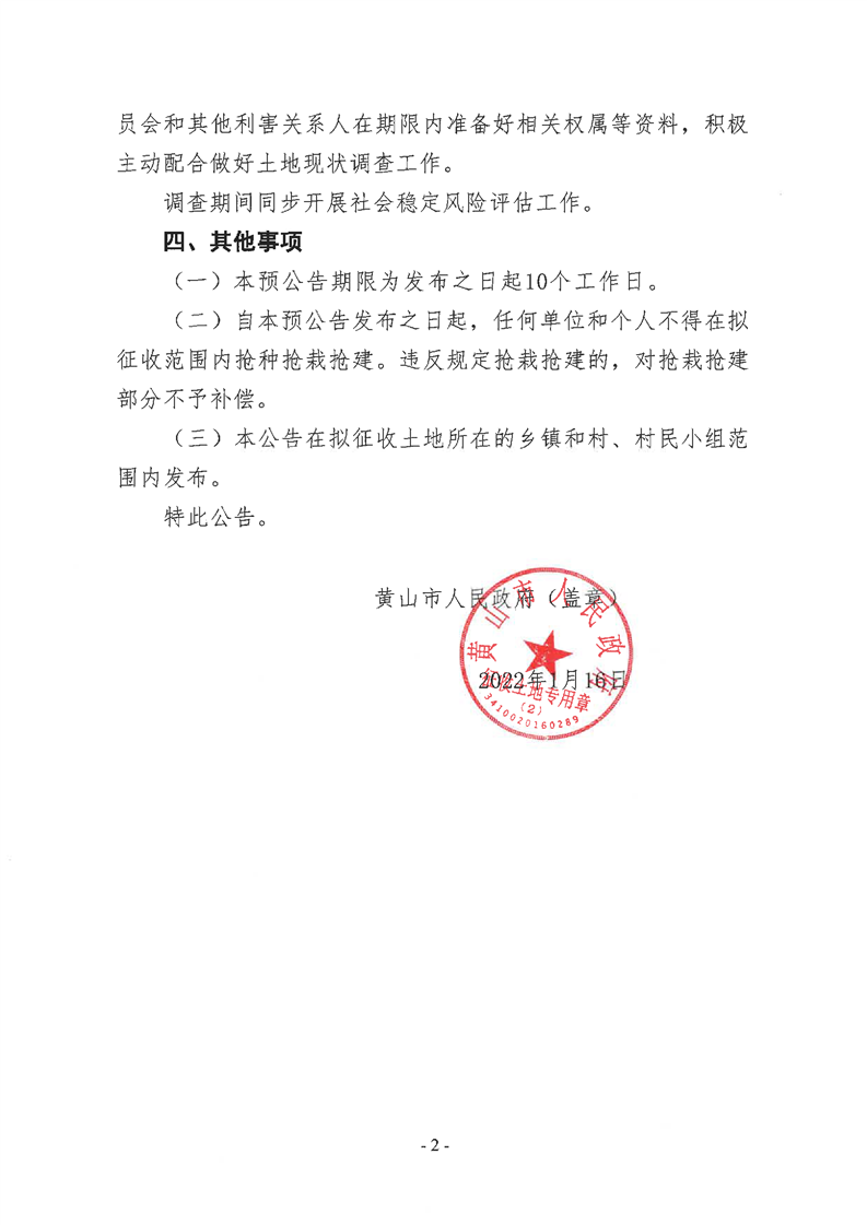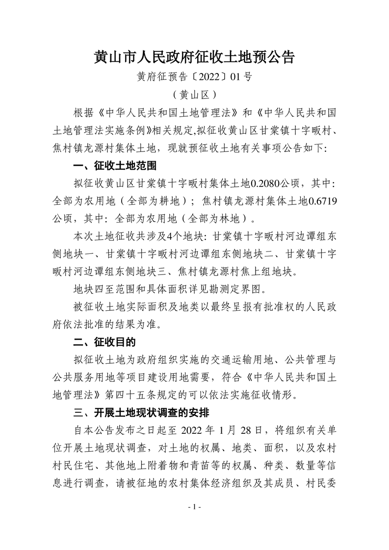黄山市人民政府征收土地预公告黄府征预告〔2022〕01号(黄山区)