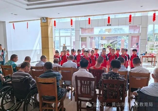 一到敬老院,孩子们便热情地向爷爷奶奶们问好,围坐在老人身旁,一边展示画作一边讲述画中的故事。老人们接过这些充满童趣的作品,脸上绽放出幸福的笑容。随后,孩子们表演了《我们是共产主义接班人》《听我说谢谢你》等歌曲,稚嫩的歌声回荡在院落中,不少老人跟着节奏轻轻鼓掌,眼中泛着感动的泪光。