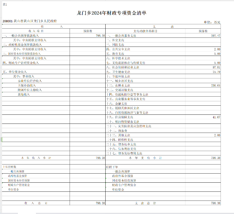 龙门乡2024年财政专项资金清单