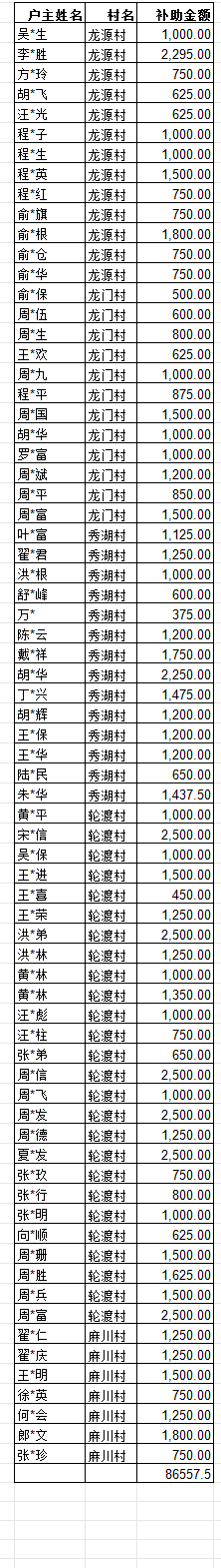 2024年龙门乡7月份第14批次产业发展扶贫项目补助资金清册表