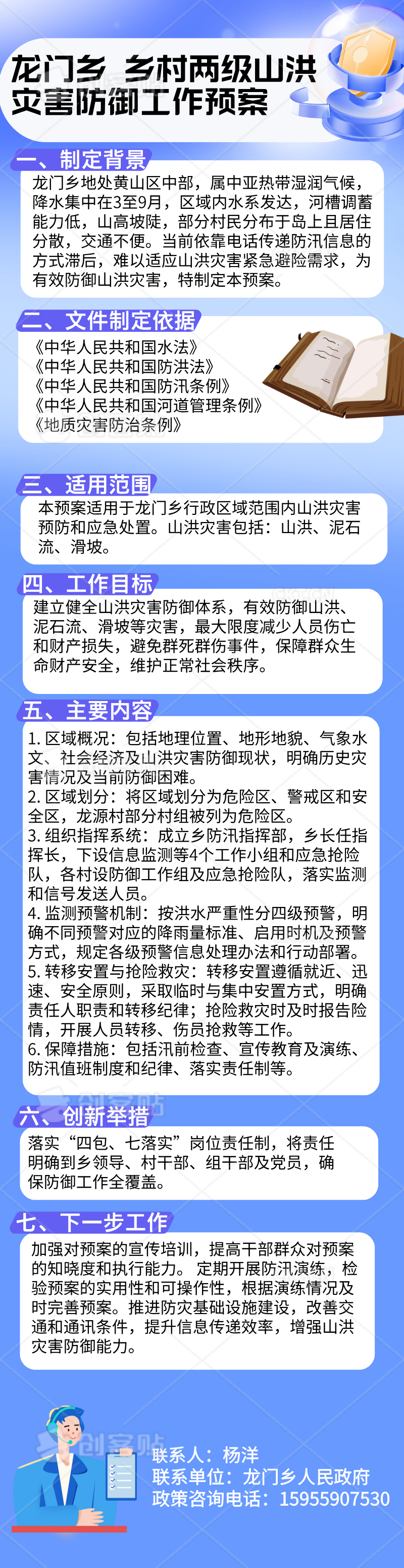 【本级政策图片解读】关于《龙门乡乡村两级2025年山洪灾害防御工作预案》内容解读