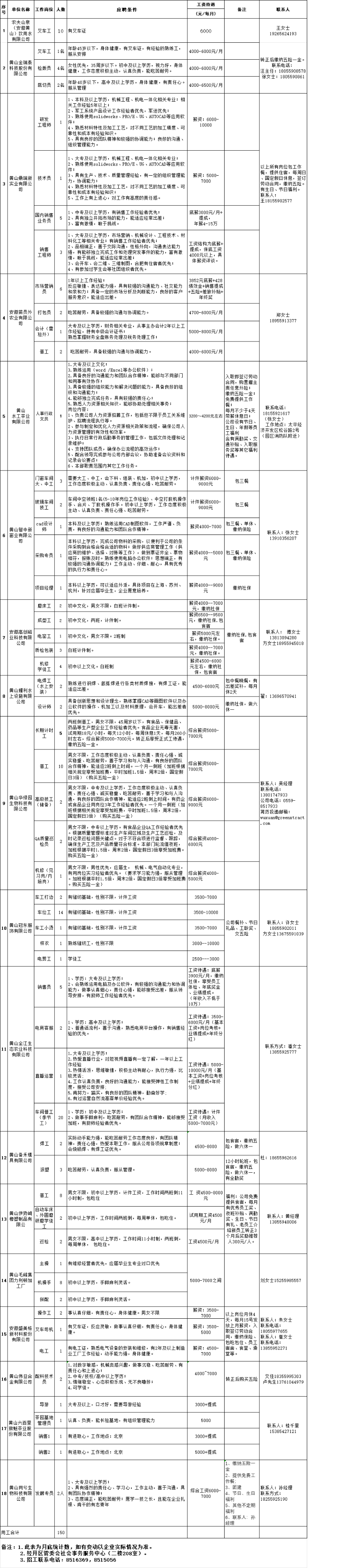 黄山太平经开区企业用工需求月汇总表(2025年1月)
