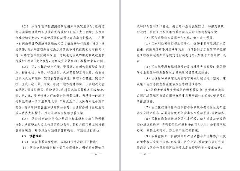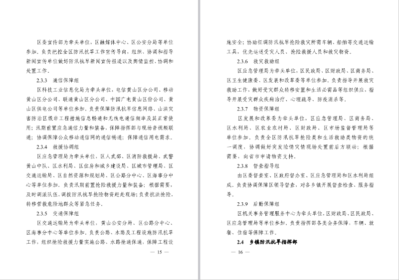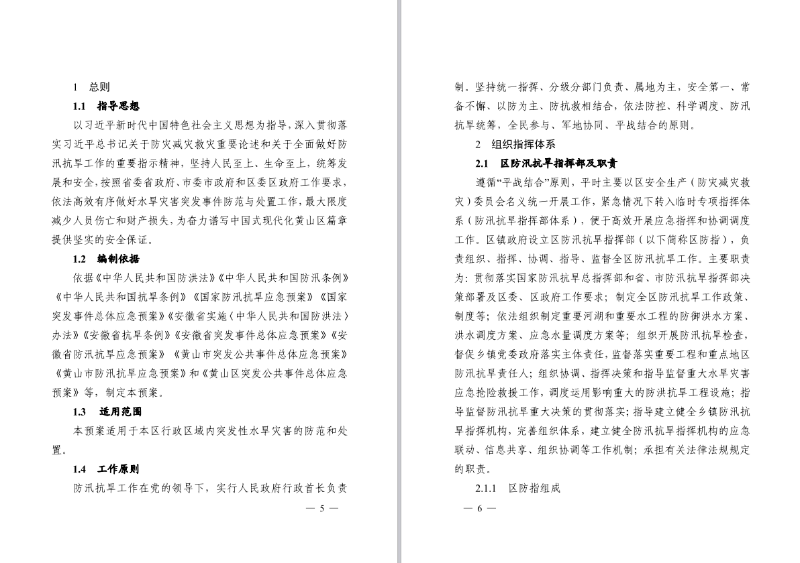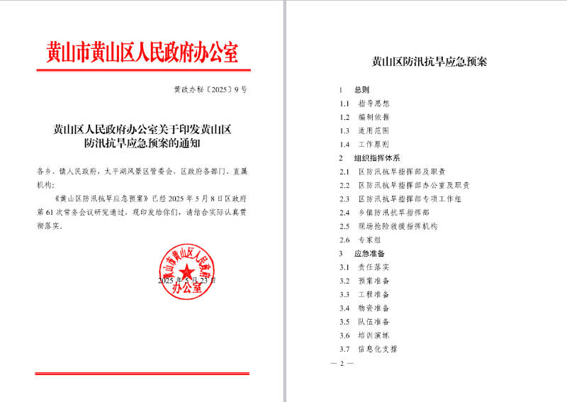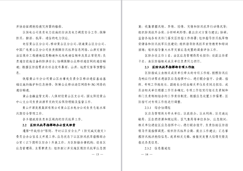 【上级预案】关于印发黄山区防汛抗旱应急预案的通知