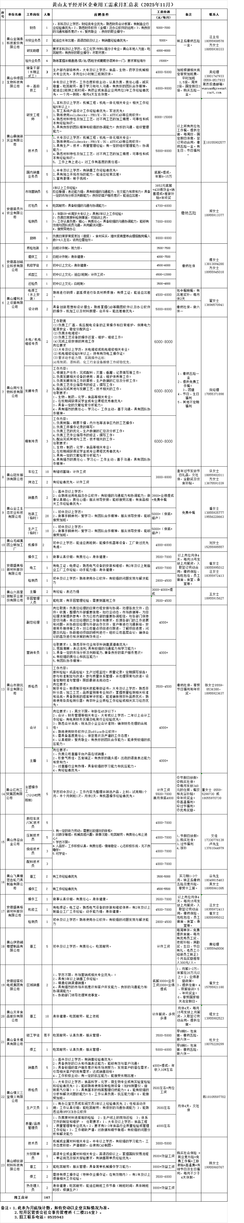 黄山太平经开区企业用工需求月汇总表(2025年11月)