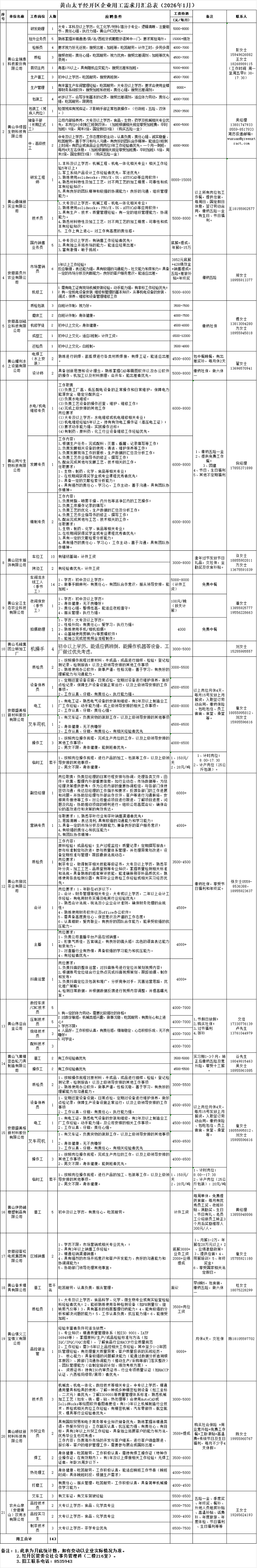 黄山太平经开区企业用工需求月汇总表(2026年1月)