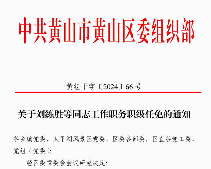 关于刘练胜等同志工作职务职级任免的通知