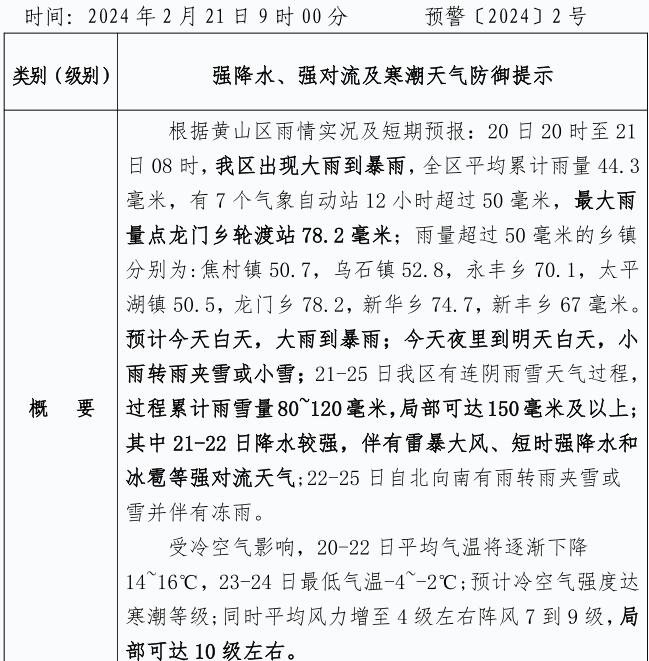 【预警信息】区应急管理局预警信息2024.2寒潮+强降水