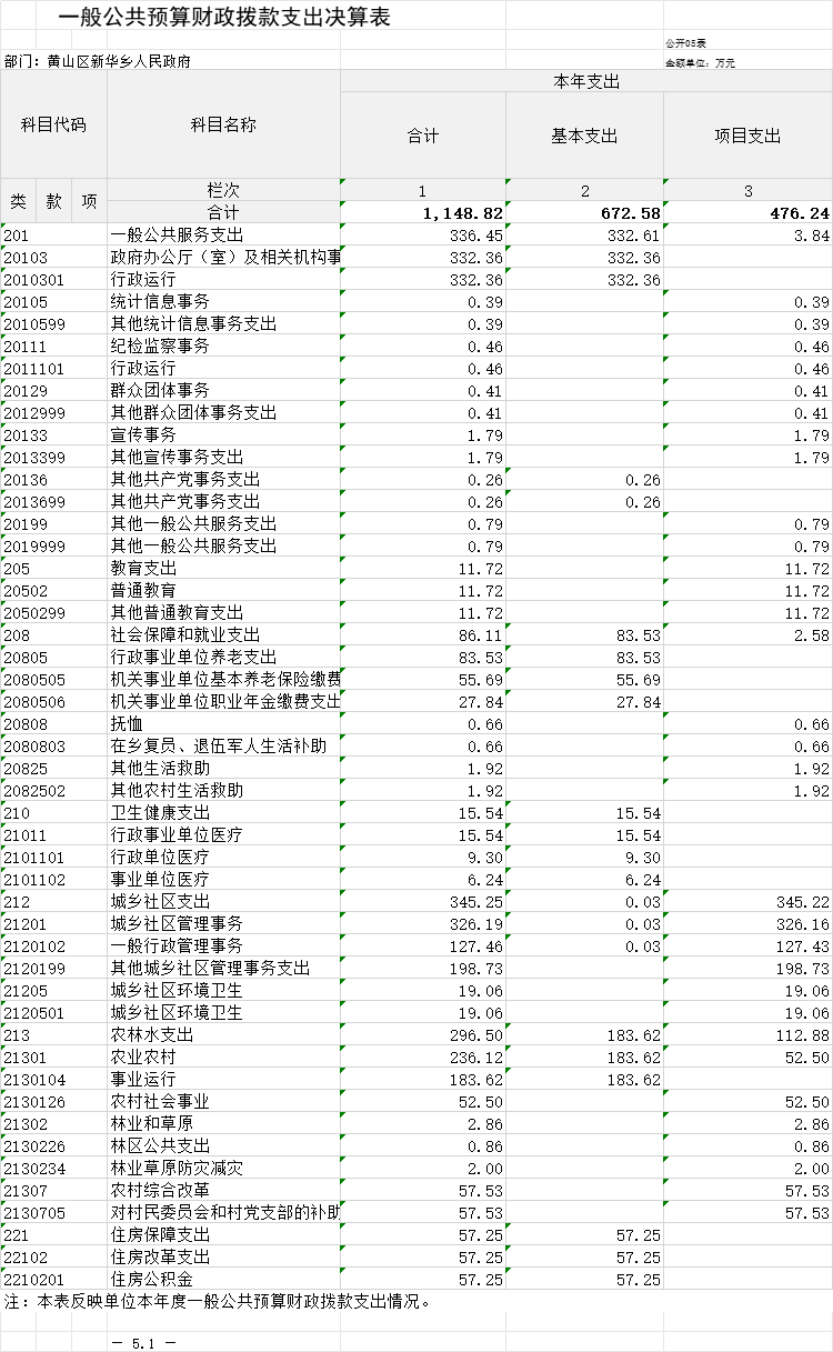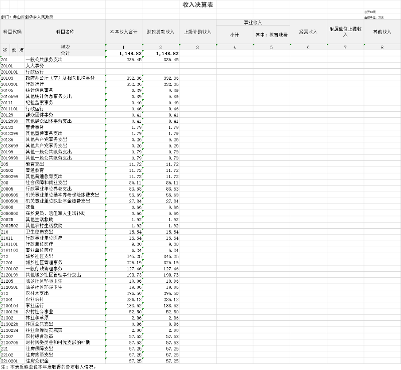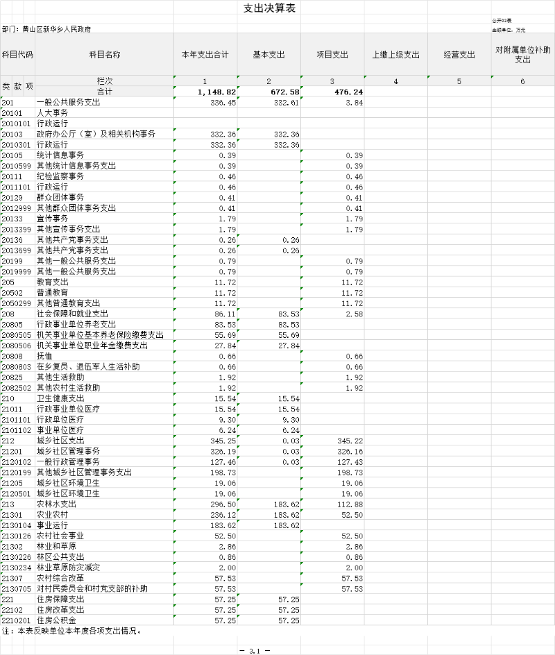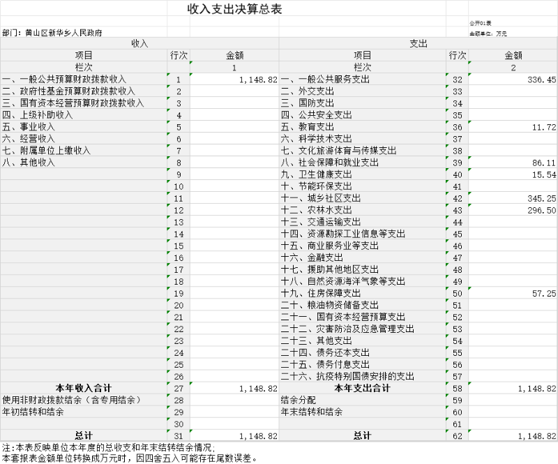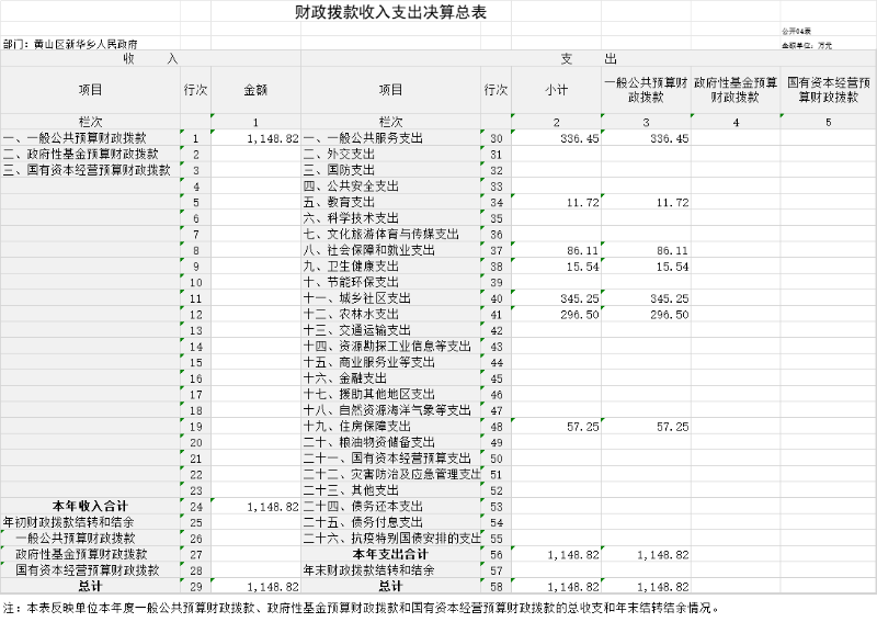 第二部分 黄山区新华乡人民政府2023年度部门决算表
