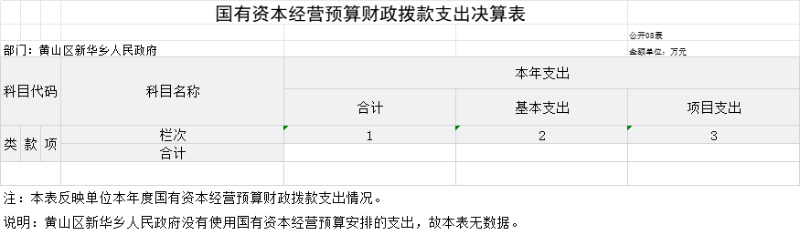黄山区新华乡人民政府没有使用国有资本经营预算财政拨款安排的支出。
